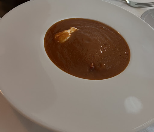 I ordered tomato soup and the waiter brought a bowl with a dried tomato and a dollop of cheese in the bowl and said with a smile, “Here’s your soup. ” He didn’t fool me! The next moment he poured a beautiful tomato soup over the items in the bowl and it was hot and delicious and excellent. Even better with the bread variety they brought, which we ordered. The chewy black bread with sunflower seeds on the crust was delicious.