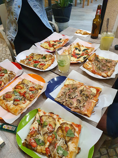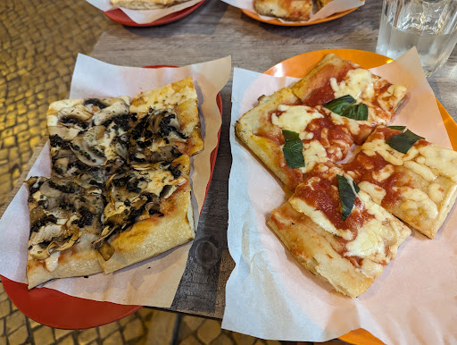 Very delicous pizza by the slice for 3 Euro a piece. Glass of wine is 2,50 Euro. So it's not a steal compared to eating places where locals hang out but considering it's in a very touristy area I guess it's fair. After ordering they heat up the slice for you. Let them know if you like your pizza crispy or more soft. On my first order the pizza was too crispy for my taste. On my second order with shorter heating time I got a more soft version which I prefer when it comes to pizza and which I found to be perfect. If your party wants more than 3 slices they offer a whole pie where you can...