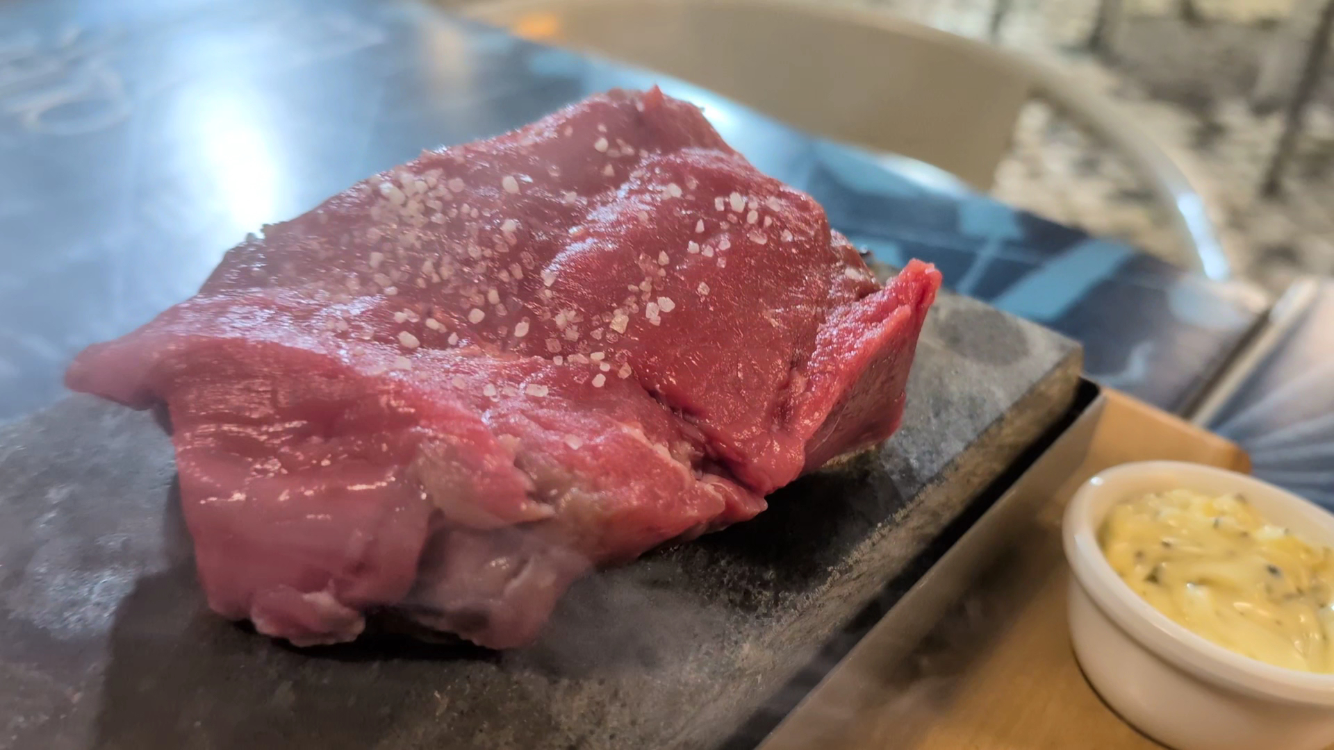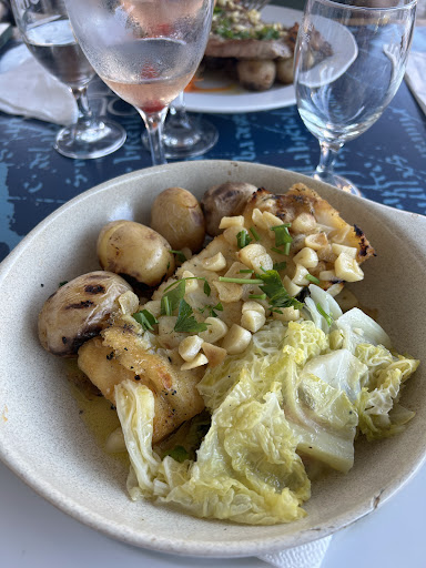 On the first night, we went all out and ordered the octopus rice, the steak cooked over a hot stone with salt and béarnaise sauce, and a skewer with cuttlefish, shrimp, and vegetables—everything was incredible. The next night, we tried turnip green soup, the shrimp and bread stew, the salmon of the day (topped with tomatoes, herbs, and onions), and the veal, all of which were also excellent.