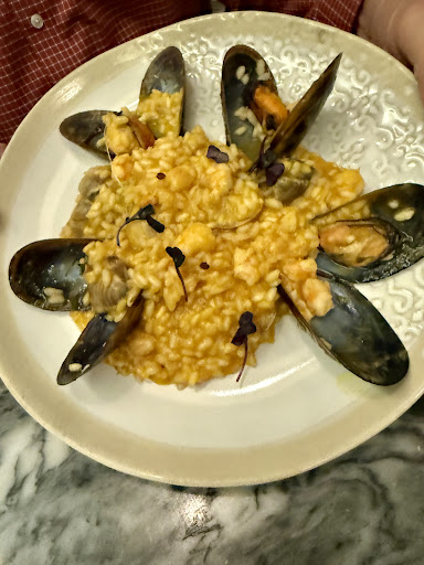 Service was good and liked the atmosphere. We got the crayfish and prawn risotto and beef cheeks and a codfish salad to start.