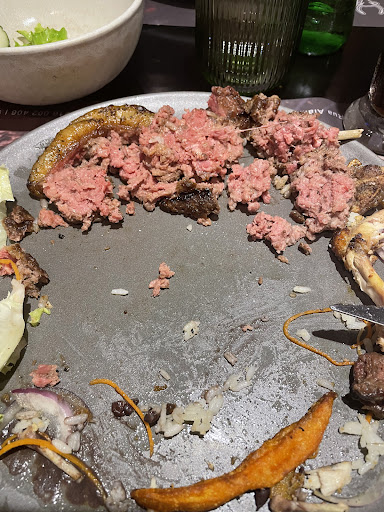 Read moreOs meus amigos combinaram um jantar de aniversário do filho , nossa primeira vez num sítio com bom ar e boa decoração, eu e a minha família (mulher e filha) avisamos que chegaríamos atrasados, mas quando chegamos apesar de estarem avisados que éramos 3 só dois tinham lugar posto na mesa, esperamos 20’ até que alguém viesse a mesa, todas as empregadas de mesa que vieram nos atender foi como se não percebessem o que nós dizíamos, e apenas uma consegui nos ajudar, para um restaurante num sítio icónico como é o parque das nações ficamos extremamente desiludidos, comecemos pelo tempo de espera, ok o restaurante estava cheio , mas com tanta gente a servir esperava maior fluidez de serviço, depois a comida, primeiro parecia que não havia, trouxerem os acompanhamentos e acabámos de comer ainda não tinha vindo a carne, depois de tanto reclamarmos trouxeram um banquete exagerado e feito à pressa com carne não mal passada mas sim crua, o que para nós ainda foi pior pois foi um completo desperdício de comida, o pior de tudo, o atendimento, pareciam sempre chateados e que não percebiam o que pedíamos, penso que é importante reunir condições de formação para pessoas que estão num sítio aonde vão receber todo o tipo de pessoas especialmente em termos de cultura, por fim, dizer que algumas pessoas que estavam connosco tiveram intoxicação alimentar, o que claro já se esperava , carne de super má qualidade e super mal confécionada, uma coisa é certa, nunca mais metemos lá os pés de certeza P.S: a foto parece carne mastigada mas não é, é mesmo...