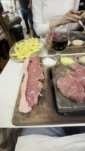 Read moreThere's already a queue when they open at 7pm. The food including drinks and appetizers take a long time because of that. We waited about fifteen minutes for drinks and more than 30min for the rest. The fish dishes come with the typical unspectacular potatoes and tomatoe rings. The fish rice bowls are by far enough for two people. Cannot recommend the codfish - tons of bones and the taste was meh. The octopus rice was much better, nice and soft. The meat dishes come with fries. The meat itself is nice and you will cook it to your liking on a hot stone. The fries are worse than any fast food fries...think the opposite of crispy, like an hour old. The meat can be dipped into salt and two mayonnaise based sauces. Mains are between €8-12. The traditional Portuguese appetizers are available. All in all, it's a nice dinner but I truly do not understand the queues. We came here because it was right next to our accommodation. Seating is very tight. The one waitress also seemed to be overwhelmed with all the people. She missed some of our orders. Wouldn't come back a...