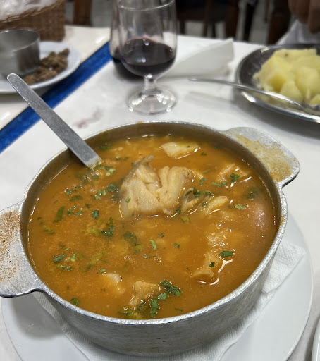 This was quite the find for us today! Love this place! Handwritten menu, the owner patiently helped us understand what items were. We started with bread and olives, then enjoyed a freshly prepared dish of grilled squid, there were 8 full medium size squid and they were delicious! Plus potatoes. This came with a nice simple salad. Next we had the âarroz de bacalhauâ (big chunks of fresh (not salted) divine cod fish cooked with rice in a delicious slightly tomato-ish broth which was simple and fantastic. And one beer, and two full mid-sized carafes of red wine. Then great rice pudding for dessert, and complimentary shots of tasty liqueur. All for a grand total of 24 euros, easily the best deal weâve had so far in Portugal. The best purchase weâve made so far in 2024. And every thing tasted so nice. My wife and I agreed, âthis is why we travel!â From this pleasant lunch alone, we are even more inclined to make a 2nd trip to Portugal. If you are in Belem â walk out of that touristy area just a few more meters and...