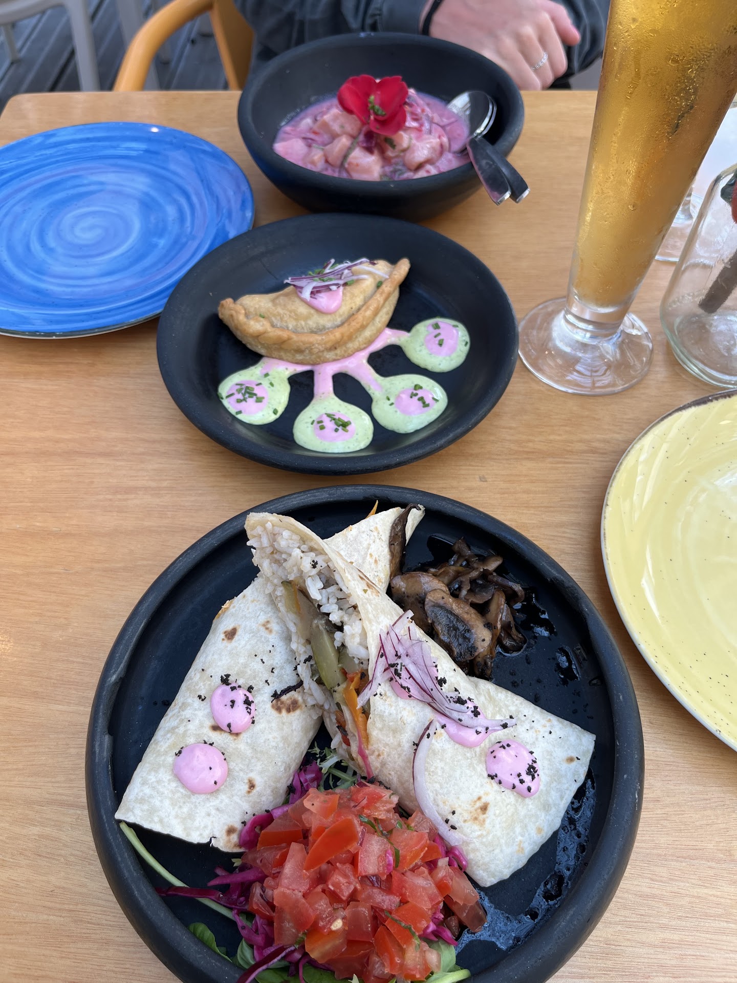 Main dish - ceviches with salmon, well seasoned, good chunks of salmon but again tooo little portion. I went with Vegetarian buritto and this is the key for my disappointment. It was just a rice with oily vegetables without even a bit of salt, pepper and flavour. Even the wrap was made in wrong way. At least the portion was a bit bigger (portion of no taste).
