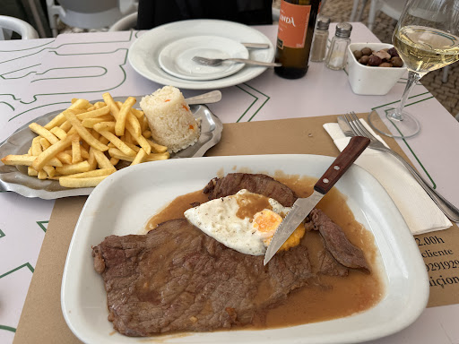 Read moreNão foi nada do que estava à espera. No sítio onde é, achei que era boa comida portuguesa, mas deixou muito a desejar. Os ovos rotos eram péssimos. Batatas fritas moles e cheias de óleo. Pedaços de bacon gigantes e nem passaram pela frigideira. Prato de presunto com tiras de presunto super mal cortadas. E o choco frito também super oleoso e mal feito (só metade das tiras é que tinha polme...). Isto tudo a juntar a um serviço muito fraco. Uma das empregadas muito mal educada, o outro com comentários muito despropositados. Pode ter sido só um mau dia, mas com...