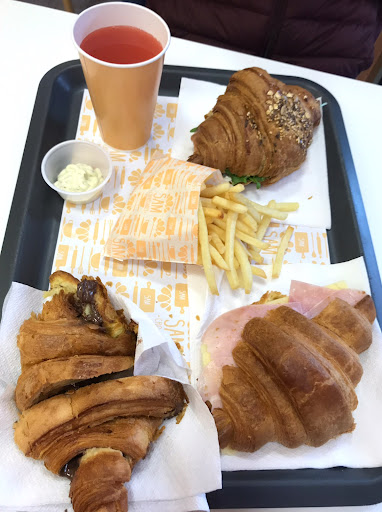 Read morePretty decent for a quick lunch, you can make your own croissant by chosing one of the four type of croissants they have and then adding ingredients or you can just pick pre fixed menu which is usually cheaper and follow their suggestions on the monthly croissantm. The staff is helpful, has wifi and if you have a dog you can bring him to the outside part of the café and ask them to give you a treat...