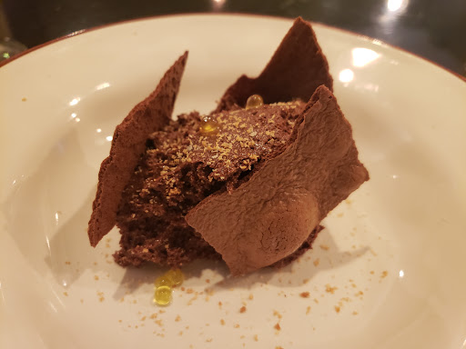Excellent food. The meat croquette is pleasant but simple on its own and delicious with the smokey mayo it comes with. The duck ngiri is tasty with the accompanying orange sauce, which you can use in the same way you'd normally use soy sauce. I do wish the orange sauce had a denser flavor. It was subtle, so I had to try and soak enough of it up into the rice. The best part of the meal was the fresh tuna main. One of the best dishes I've eaten in Portugal. The fish is fresh and cooked perfectly, not overdone. It's served with thin sliced vegetables, wasabi mayo, and a basil sauce. I wonder how they made the basil sauce, because it was jawdroppingly good. All the distinctive flavors and textures in this dish worked well together. I had the chocolate mousse for a dessert. It's very chocolatey, like brownie batter, but a little less sweet. There are crunchy cocoa crackers that come in the mousse. They don't really add much flavor to the dish, but the texture combo is nice. I had the coconut pandan cocktail to drink. The drink part was sour, and on top was slightly sweet coconut foam. When I got a sip with both components together, I enjoyed it pretty well. I probably wouldn't order this drink again, because I prefer sweeter cocktails, and this was definitely more sour. Their cocktail menu is creative and interesting.