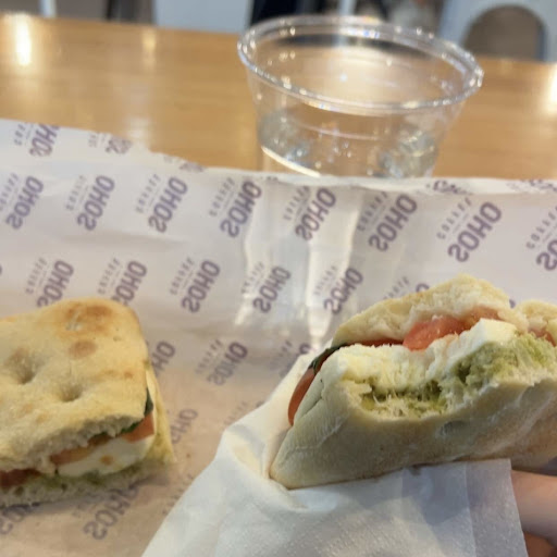 Got a mozzarella pesto ciabatta, it was amazing. Fresh ingredients, you could tell. Their bread is really nice specially when warmed up! For drink I just got a free cup of water…