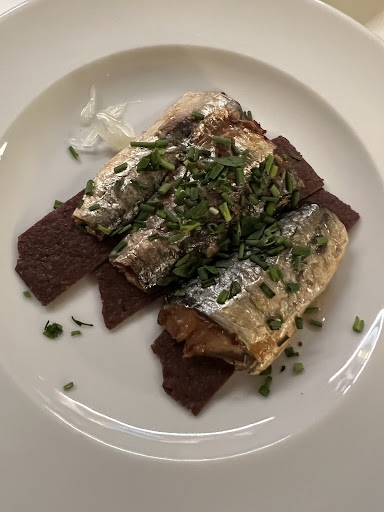 Read moreThis is a completely unique experience and the ONLY place in Lisbon where you can order plated seafood from a tin. Don’t go here looking for the fresh catch, that’s not what this place is about… but take a minute to open your mind to these delicious treats! We recommend the Octopus in Green sauce, the Spicy Mackerel, and the Muxama! We also had the Dish of the Day, a codfish salad, that was served with bread and a beverage. Delicious!We had the green wine. Theirs is a sparkling white version that was a bit sweet and very light and refreshing. Although the location on Pink Street is quite touristy, this place felt like a local vibe, perhaps because we were here...