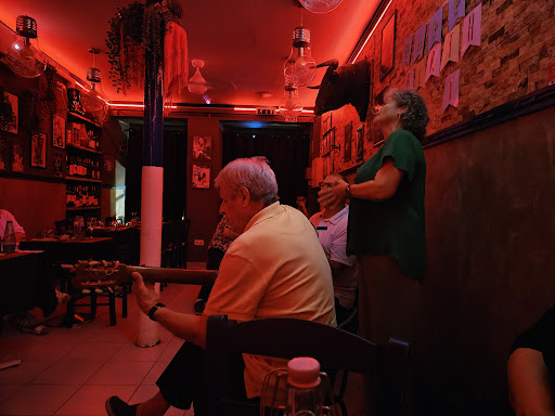 Read moreDuarte and Marina Santos are the gracious hosts of this intimate restaurant in ancient Alfama, Portugal. Together they do it all. She cooks the traditional Portugese meal consisting of seafood and/ or pork, and he is your waiter and bus boy . Although you are a complete stranger in these surroundings you will feel as though you are family or at least a close lifelong friend. You will get to know the other dinner guests as well, since the entire restaurant is really not much larger than the average American family room. Several hours later after you have been satiated with good home cooking and yes homemade wine, Marina will shed her apron and bandana and emerge as a femme fatale in a form fitting dress and silk scarf, and Duarte will sit down with his well worn guitar. He will be joined by another musician donning a Fado mandolin , and the most remarkable evening of entertainment will unfold before your eyes and ears. Everything about the Alfama and Sr.Fado draw you into the epicenter of saudade , the melancholic longing for love and loss, the emotions we as humans all experience but only the Iberian Peninsula turns into a true art form. You will become part of this oral tradition of poetry set to music, you will be immersed in a multi cultural atmosphere and experience, and the polyglot in you will be inspired to communicate in foreign tongues. Though attending a Fado show might be a cliched tourist activity , this one is truly an exceptional window into an centuries old tradition and well worth your time and money . Obrigada Marina and Duarte for an unforgettable evening of food , wine and song. And felicidades to that adorable Spanish/Portugese couple who got engaged in the midst...