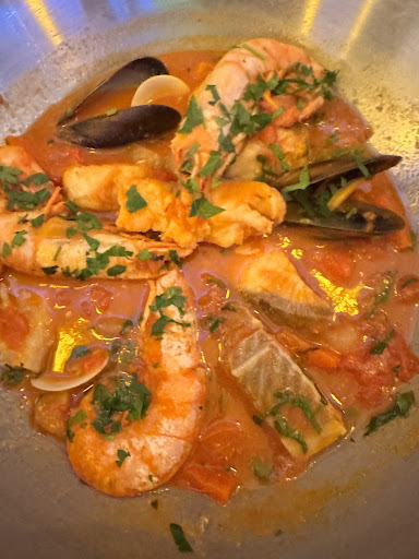 Read moreFirst of all, one star is for the musicians and the other one for the waitresses… This is a complete tourist trap! We paid 58€ per person and couldn’t eat anything other than starters which were also below the average. There was humus and babagannush in the starters and the owner argued that humus is Portuguese because it’s their own humus recipe… I mean just because you make humus in Portugal with your own recipe, it doesn’t make it a Portuguese dish obviously! There was also „pasta in white sauce“, which was basically pasta with cream and cheese, also tasteless, also claimed to be a Portuguese dish... the most annoying thing is that he takes you for a fool! Also the main dish with fish was the worst seafood I’ve ever had in my life! They tossed it all with some vegetable broth in a pot and cooked it until they are in pieces and tasteless. The pork was a bit better but still wasn’t anything special! The dessert was even worse with a few apple slices, literally one strawberry and a few banana slices with really bad whipped cream and cheapest chocolate sauce. There was also the worst almond cake ever, way too sugary, tasteless and not fresh. We couldn’t even drink the wine, very bad quality… and the atmosphere was also horrible with lame blue light… the only positive thing was music which I couldn’t enjoy personally with that horrible light and wine! Apparently the owner was changed and the quality is nothing close to what it used to be… It’s Lisbon, you have wonderful food here, just stay away...