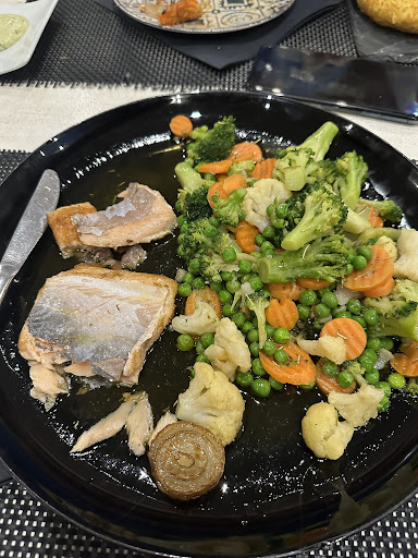 Checked the menu outside and I though let’s try it it’s seems nice. I waited by the door only to be greeted by a rude waiter wich seemed to be the manager. I was sat at my table and waited a long long time for my food. I ordered the grilled salmon with herbs as described on the menu and this is what I got. Frozen veg mix boiled and two pieces of also frozen salmon put together in order to form what was meant to be one piece of salmon. The veg was raw and with no salt or seasoning at all and the fish tasted old and like it had been sitting in a freezer for way too long. There was also a level of water on my plate. Other customers were also bothered by the waiter and the way he was being unprofessional screaming and not smiling or acknowledging the costumers in a professional way. I ended up not eating anything and wasted one hour of my day for no reason. I was truly disappointed and don’t understand how this restaurant has good reviews. I don’t think I’ve ever been served a meal this bad in a restaurant in my life. Please don’t fall for these other reviews, the restaurant as had good moments and was a part of some competitions but that was years ago it seems like it as clearly...