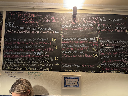 Read moreIncredible food and service. When we arrived, we were starving. Now, we both feel whole in a way that is comparable only with those most deepest states of love, so ineffably complete that even the greatest lines of Dante and Shakespeare could not hold a candle to how well rounded both our stomachs and emotional constitutions feel at this time. I used to be an atheist but now I know God. I know him well and true. I see him all around me. I know him in the blood sausage scotch egg Apple chutney dish. I know him in the fried bread and sardine masterpiece that arrived two minutes after we placed the order. I know him in every aspect of Tasca Baldracca. I also also know they say the Greek Gods are no more; yet does the goddess of love, that mercurial Aphrodite, not live within the burnished shell of that most beautiful creme brûlée? Does not the great god of the sea, that most powerful Poseidon, reside inside the wonderful fried Octopus, or that goddess of ingenuity and wisdom, the maverick Athena, inside that carrot cake and chocolate glory? Our most wonderful waiter, the rapid, attentive Hermes, who looked after us so well, who was so quick and caring, so light of foot and fancy, is surely the greatest waiter of all the ages combined. Come here. Come here now. To the greatest restaurant that ever existed. And you shall feast - not on mere food and drink, but on the nectar and ambrosia...