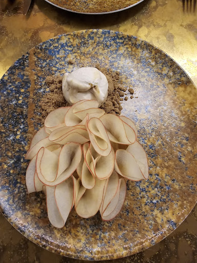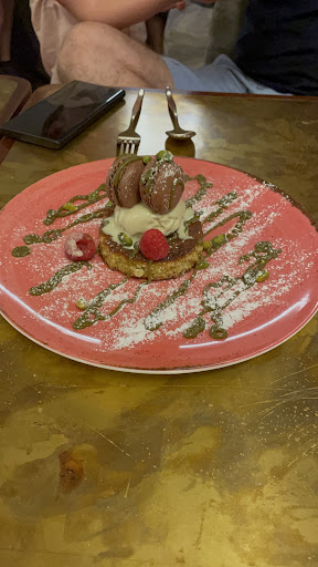 Pistachio Surprise. Offered to us for the celebration of our guests birthday, the pistachio cake base was topped with pistachio ice-cream, a pistachio infused drizzle and then topped with some fresh pistachios and a few chocolate macaroons. I didn’t love the cake base, but the ice cream, the drizzle, the macaroons were all yummy.