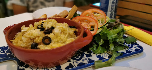 CASH ONLY ESTABLISHMENT The hubs and I were at Tasco Do Chico having a quick drink and listening to the first act of Fado, and really needed to eat thereafter. We did a quick walk over to this place and enjoyed a couple of played of the day. The vibe is a relaxing cafe that opens late with the option of cocktails, beer and food. We had the Salads de Polvo - Octopus Salad Tapas (EUR5) and the Bacalhau à Bràs - cod, potatoes, egg (EUR8). No drinks as we were still full of drinks from Fado. Both dishes came within 10 mins. Both were super tasty and amazingly less salty than most places we have been in Portugal. The flavours are simple, but they let the main ingredients shine in their own unique flavours. We highly recommend Bacalhau à Bràs. The egg is almost invisible but provides such as amazingly creamy texture. It is accompanied by a salad and some toasts. The Salads de Polvo's octopus is perfectly cooked - it is soft and chewy. The octopus is accompanied by toasts. The place started to get really busy by 10pm. Overall, EXCELLENT service and food....
