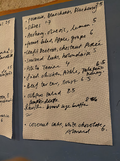 Read moreThis is really tough. On the one hand you have friendly staff a good vibe a good selection of vines as well as an intriguing menu… on the other hand well it is hard to describe but something was missing with every dish we had that is not to say that every dish was bad but that something was either off or missing from everything The potato terrine was too salty The tartar was too rough and chunky The beetroot was interesting but ultimately somewhat forgettable and the blueberry focaccia has more something of a blueberry brownie than a focaccia the olive oil and anchovies are also just that olive oil in anchovies that are still cold fresh out of a glass instead of maybe anchovies that were dissolved in olive oil The ravioli were the best part but where the terrine was having too much salt they were missing it The coconut cake was genuinely nice tho These three stars are not condemning but motivational This place really has GREAT potential because while there was missing something with everything only small adjustments have to be made (at many parts) for it...