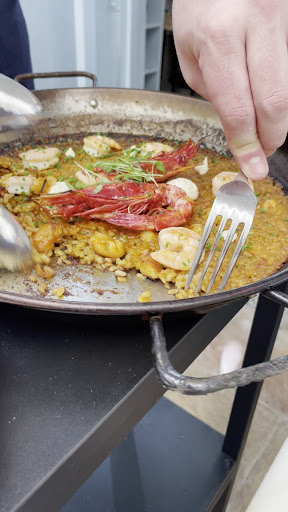 I used to walk past this space daily as they tiled and jackhammered inside, wondering when it would be opening, given it is a new seafood-based offering from the Cortesia folks. I could see the colourful tiles and quirky fish fabric curtains, the long narrow space with the large open bar area, all gradually coming together. Finally it is open and we popped in for lunch on the off chance they had a free table, which they did in the small sheltered courtyard at the rear (we had to push past a few slow and curious old men but we nabbed it). I couldn't fault the delicious couvert (bread, sweet vinegary marinated olives and whipped butter), and the starters were divine; smoky prawn croquettes and white fish taquitos in a hard shell. After inhaling those without pause, i was heartened for the extravagant main - rice with scarlet prawns. Basically a paella, it arrived in the pan, with the charred rice scraped from the edges and the scarlet prawn head juice squeezed over it right before our eyes. It was absolutely divine. Every mouthful more delicious than the last. It was served with a lively homemade chilli sauce for those with tolerance, and i put it over half my plate, so i could still enjoy the unadulterated kick of the smoky salty rice and sweet prawn meat. Dessert was a chocolate basque cheesecake, a clever update on the traditional and ubiquitous chocolate mousse you would ordinarily order after such a feast. Again - utterly fabulous. I would go back for the same meal again and again - and I recommend you...
