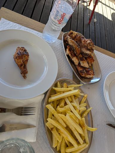 Comida excelente! Um dos melhores frangos assados que já comi. Ou melhor, toda a comida de grelha é excelente, carne ou peixe. Algo que me agrada, mesmo quando estou com pressa, é que não têm comida semi-feita para ganhar tempo. Se queres um frango, senta-te e espera que o assemos, sem pressas, mas com todos os requintes que me fazem gostar demais deste local. É verdade, chateia ter de esperar, mas vale bem a pena. A grelha está sempre imaculada, isto porque de cinco em cinco minutos estão a retirar todos os produtos de cima dela e a limpá-la, estejam as pessoas que estiverem à espera. Mas talvez por isso os sabores da comida ali preparada são tão genuínos e saborosos. Queres batatas fritas? Ok... descascamos, cortamos e fritamos na hora, não há cá tabuleiros cheios de batatas para servir a quem chega e pede. E tudo o resto da ementa é maravilhoso, desde o simples acompanhamento que se devia chamar 'arroz maravilhoso' e não apenas arroz, até aos pratos mais requintados como um caril de gambas (que já agora vai maravilhosamente bem quer com as batatas quer com o arroz). Até uma simples salada, bem temperada e com produtos frescos, faz ansiar pela próxima ida ao local. Enfim, bom para quem gosta de 'slow food', seja almoço seja ao jantar. Como o espaço não é muito grande, se tens hipótese de levar e comer em casa, então já sabes - é imperativo pedires a mais, vais querer ter restos para...