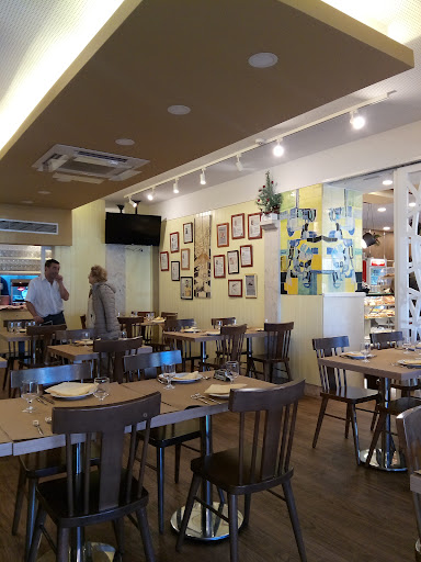 Read moreSala agradável, em tons claros, arejada e bem cuidada. Esplanada convidativa, a uma distância conveniente do bulício da Avenida de Roma. Na vitrina, uma oferta considerável de salgados e bolos, uns e outros com muito bom aspeto. Tem aparelho de televisão na sala, gelados 'Olá' e vende cigarros. Um pouco surpreendente, no contexto, parece o facto de ser agente dos Jogos Santa Casa; sobretudo, se tivermos em conta que a caixa é a mesma que para o pagamento da despesa feita no estabelecimento, o que origina uma espera evitável quando queremos pagar o consumo e temos, à nossa frente, apostadores ansiosos por registar os seus boletins, ou por tentar a sorte numa 'raspadinha'. O meu 'croissant' - generoso - com queijo ficou por 2,85€, o que se me afigura desajustado face à qualidade do serviço e aos preços praticados na zona. Os pratos, ao almoço, variam entre os 6,50€ - 'hamburgers' e saladas - e os 12,00€. Prato vegetariano por 6,50€. Vendem pão para fora. Avaliando...