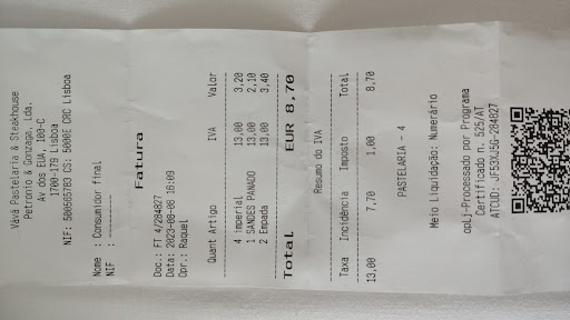 Read moreThis is by far the most sincere and delicious place I have discovered in Lisbon. The service is outstanding and the staff is super accommodating. I had the bife do lombo with molho 3 pimentas and salada verde and it was incredible. I bought some boladas Francescas (regular and chocolate) to take home and some pastel de nata and I can tell you I would have eaten them all if it wasn't that I promised myself I would give it to my mom and dad. Seriously, go eat here, you won't be sorry!...