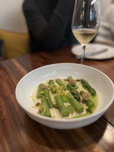 5 Stars, no hesitation! The owner Clément runs a perfect operation. He is the front of house and greets you with a smile (even with the mask on) and some enthusiasm. He'll first introduce you to the wine list and we opted for a Portuguese spumante (sparkling wine) to start with while carefuly listening to the description of the 6 dishes available that day.