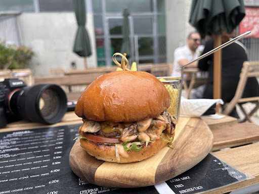 Omg. This was the best culinary discovery of the whole year. These are officially the best burguers I've ever had the pleasure of eating. Let me give you the tour: this is a very lovely kiosk with tables outside, in a very cozy space with view to a busy yet colourful street. There you'll be met by the very friendly and helpful staff, and will be presented to a very captivating menu, with equally captivating prices. When I tell you I did not need to eat a burger at 5pm, and it ended up being the best decision of my day, I mean it. I ordered a beef burger and my boyfriend a chicken one. Mine was so juicy I kept dipping the fries in the leftover drip, the meat was super flavourful, and we got to know that they buy their meat daily from the town market, which is right on the side. My boyfriend's tho. I couldn't pick a favourite one out of the two. Usually I don't go for chicken because it tends to be blend and dry. But his was so crunchy and well seasoned, and all the other ingredients just made the perfect combination. AND THE BREAD!!!! I never thought I'd enjoy burger buns as much as this, they are daily made and it shows. I was already full but those crepes where still calling for me, and it was another 5/5, the perfect ending to the perfect meal. Cannot recommend enough, from the place, to the amazing staff, to the best burguers, I can't wait to go there again, so do yourself a favour and take the afternoon to yourself and invite your friends, it's sure to be an...