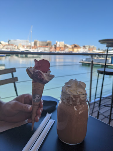My husband and I enjoyed this place a few times during our stay in Vilamoura marina. The staff are amazing, very polite and happy as they serve. The ice cream and sorbets are amazing. They take time out to go through the allergy chart mounted on the wall with you. Coffee is lovely. Thank you for making us feel welcome and taking tine to help explain things with my dietary requirements: gluten free and vegan options is not always easy in another country. 26th July evening was great. The lady who appeared to be in charge was a true team leader. As the queues stretched outside down the marina to be served, she continued to support her team stay calm, interact with her customers explaining every detail about what they offer with smile! Very positive...