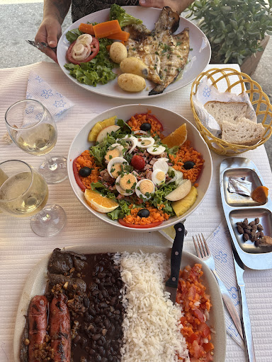 Read moreStumbled across this on our first night, couldn't believe the price, 11 euros, so expectations weren't high. We had the bread and olives, with half a carafe of wine and a bottle of water, then l had the sea bream with potatoes and salad and my husband had the mixed meat with chips and salad. Both meals were excellent my husband had orange cake and I had the pudim flan, again very good and 2 white coffees. Went here 3 nights, I had the tuna bellies, which weren't really to my taste, but I ate them. Excellent...