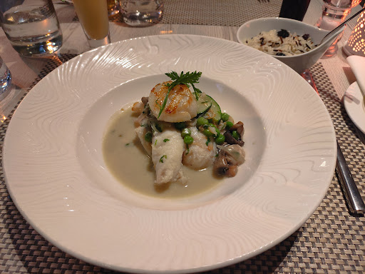 Overall, the food was okay, good but not incredible considering the price per person. My partner and I shared the caprese salad, the seared tuna salad niçoise, which was probably the highlight of the meal (although there was too much mayonnaise), and the monkfish with a side of extra grilled vegetables. The fish was quite good but slightly overcooked. We each also had a glass of white wine. I believe the bill came to somewhere around 110€, which I found expensive for the quantity and quality - I'm from Montreal and we regularly can spend that much for dinner but we generally get more food -2 mains instead of one, a second drink each- and better quality food for the same price.