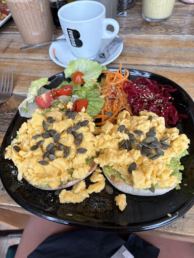 We went on a Saturday morning. There’s an upstairs terrace area, a few tables in the restaurant and 2 tables out the front. It gets packed. People know it’s a great place for healthy food.