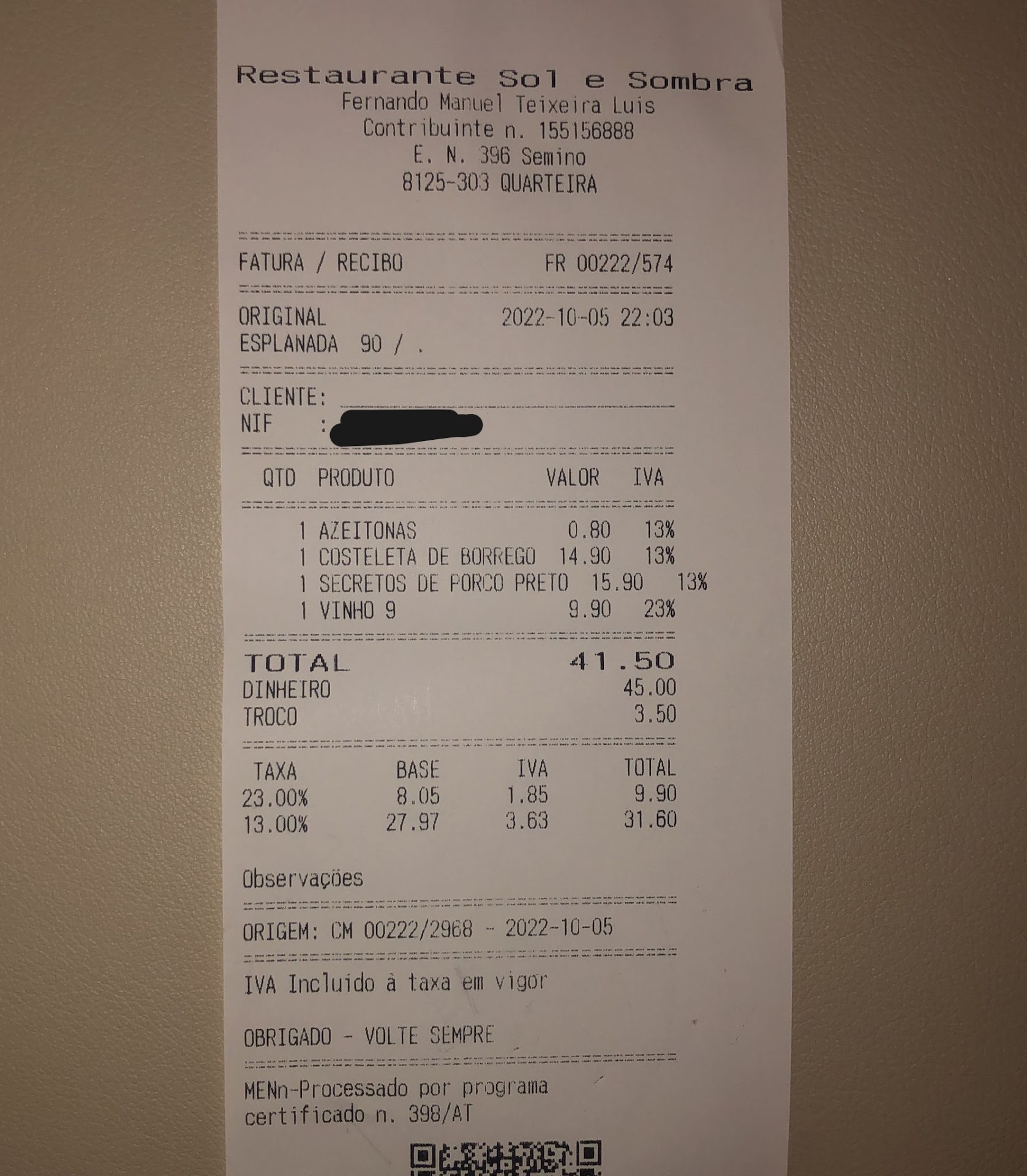 É verdade que o sabor não se pode negar: a confecção era correta e a qualidade dos ingredientes estava lá. Mas numa refeição, como numa boa peça de teatro, não basta a competência técnica; é preciso encenação, contexto, generosidade. Aqui, o público ficou à espera do clímax. Tudo o resto — pão, bebida, sobremesa — é taxado à parte, e rapidamente a conta alcança valores que não encontram espelho no que chega à mesa. A soma final deixou um travo amargo que nem a simpatia dos funcionários conseguiu adoçar.