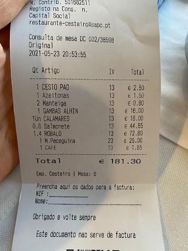 Read moreI don’t recommend this place. As you can see, it’s very expensive and the quality isn’t worth it. We honestly felt cheated, we didn’t verified the price from the bill with the menu, but we’re sure that for only 2 people it’s not possible to pay: 73€ for 1 fish, 45 € for 0,6grams of salmonetes (this means 100€/1kg?? Honestly we didn’t saw that price on the board/menu) The fried squid weren’t fresh, they tasted like chewing gum and were cold. The prawns were also super small and had lots of oil... For our reservation we asked for a good table and when we arrived they gave us a small one. When we wanted to change they told us it was “reserved”, lie!! Because the whole night or until we left, none came at those ones we asked for, and the restaurant was almost empty. THERE ARE OTHER PLACES MUCH WORTH IT AND WITH BETTER SERVICE. DO...