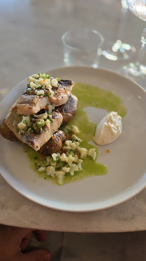 Read moreThis restaurant really does hit all 3 benchmarks for a review. For starters, each of the appetizers (Short ribs, peach and tomato salad, cod fritters, and olives) were amazing with my favourite being the short ribs (the marinade was amazing). For my entree, I had the grilled yellowtail which was cooked perfectly and served with a green olive oil sauce (olive oil, cauliflower, spices, peppers) and some roasted potatoes. It was the best seafood dish I've had in years. I also got to try the octopus and the grilled Iberico pork neck both of which were absolutely delicious as well. Finally, I finished the meal off with an amazing slice of Basque cheesecake that was superb.