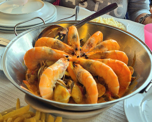 I started with soup.. very ingredients. Next It was hands down the best Mix Grilled (Grelhada Mista) i had in Portugal. Plenty of variety in the meat served. Rice with beans (delicious) and fries. Plenty. I ask to reduced the size of portion because I was alone.. and they delivered. Althought still a lot. Then I had the S. Pedro dessert... Huge ice cream mixed with a popular Portuguese liquor. Awesome. That with starters, and wine... It was around 13€. I couldn't recommend more. It's popular for sure.. it was full...