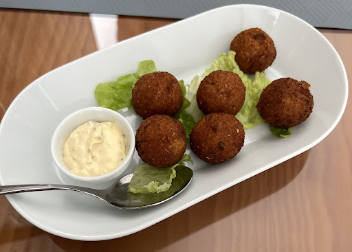 Read moreComida bem gostosa, mas não vale o preço cobrado, já comi a pouco tempo bem melhor por preço bem menor. O atendimento é básico, penso que poderiam ser mais atenciosos. Apesar de ser apenas eu e meu marido no restaurante nos obrigaram a ficar sentando em uma mesa muito pequena, então fui obrigada a colocar minha mala e sombrinha em cima da mesa bem junto ao prato de comer. Não achei isso bacana. Achamos o preço um bocado exorbitante para o local e pelo que oferecem. Porém gostamos da comida, achamos bem saborosa. Parabéns ao cozinheiro ou a cozinheira. De entrada comemos 6 pequenos croquetes (deviam pesar cerca de 10 a 12 gramas cada) de alheiras ao custo de 7€. Escolhi o vinho tinto rabarrabos tinto. Excelente. Custo de 15,90€. O prato principal pedimos apenas uma dose, que deu perfeitamente para mim e marido. Custo 18,20€. Mas nos falaram que era prato individual e que teria que pedir 2 doses. Não fui na conversa. Pedi também uma salada mista, que era muito miserável e com custo de 3€. A sobremesa eu não gostei. Experimentei e achei doce em demasia. O nome é Dona Maria. O custo total da refeição (com um café)...