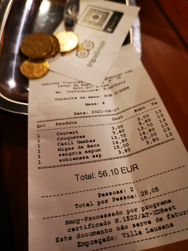 Excelente ambiente, simpatia e pratos que escolhemos. Muito bons os croquetes de alheira, excelentes as migas de bacalhau e delicioso o caril de gambas a acompanhar com uma sangria de espumante com frutos vermelhos e a terminar uma tigelada com licor beirão. Oferta simpática de jeropiga da terra. No entanto aquando da apresentação da conta que estava perfeitamente correta o manchar do pano por nao ser apresentada a fatura nem como consumidor final nem por solicitação do número fiscal, mas apenas uma consulta de mesa. A fatura é obrigatória. E por essa atitude a minha classificação não pode ser melhor. É uma pena... Mas justiça a ser feita não posso deixar passar em claro esta falta grave. Esperemos que a futuro corrijam, pois teriam muito mais a ganhar com a seriedade na apresentação da conta como fatura (obrigatória) , justamente no momento em que nos pedem para os classificar... Pós - resposta: Entendendo a explicação que nos foi dada face a esta crítica no que concerne a apresentação de fatura, sendo política específica do restaurante, e que nos agrada, quanto à responsabilidade fiscal e cuidados ambientais, seria normal que à semelhança do restante atendimento nos tivessem questionado sobre se pretenderiamos a fatura e sempre esta, com o NIF ou como consumidor final. O fato de nada dizerem coloca a dúvida e de referirem que foi emitida após a nossa saída do restaurante não satisfaz, por não ser transparente. Caso pretendam poderemos rever a crítica neste tema se nos facultarem o n° da fatura emitida, com vista a poder associar através do...