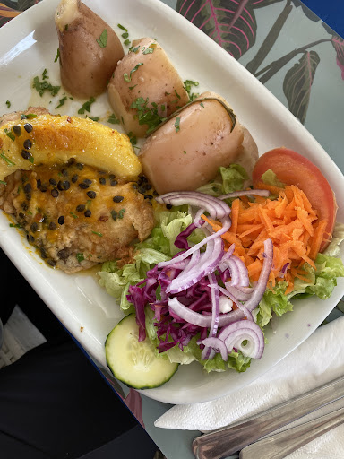 Read moreOutdoor seating. Fairly quick service. They have no balsamic vinegar, no salad dressing, no butter, no mustard. Virtually no condiments. So salad is raw lettuce and vegetables, undressed. Boring and plain. Unfortunately very bland for my taste. This might be cultural preference to have no condiments, but I won't return. The tuna steak was a large potion, but not even a lemon. No sauce. It's close to the ocean and across from the historic fort on a paved road. Nice views. Lots of shade trees.