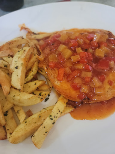 Read moreThis is a great restaurant to sit outside in the middle of Machico next to the park. We came here to eat during the Renaissance Festival since we have picky eaters. My daughter LOVED the kids chicken and fries. The chicken is a breaded and fried chicken breast. It was very tender and juicy. My husband was satisfied with his spaghetti and my chicken with sweet and sour sauce was grilled and tender and juicy. Our server seemed like he was annoyed with us, or just having a bad bay. We are human, that happens, plus we do not speak Portuguese yet. He was never rude though. Just very efficient. It was out 1st time here, so we didn't know what the procedure was for paying. My husband finally had to get up to ask. That was the only slightly annoying part. Other than that, we will definitely come back when...