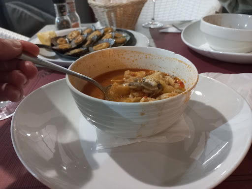 Definitely would NOT recommend THE CATAPLANA (fish and seafood for 2). Maybe it is a treasured old recipe and I don’t understand it but all you get is a super overcooked pile of what otherwise would’ve been great selection of seafood and fish. The flaky mushy tired crabs, shrimp and fish are swimming sadly in a tomato & thyme watery broth - which is all you can taste, except for the flakiness. Oh and I just forgot, they have completely forgotten to bring us the rice that was supposed to go with it. Which brings me to the service. For this meal that I just described we waited an hour! with not even a sorry or any explanation, no one even checked on us. The waiter just brought the food and never seen us again, probably sent his colleague to collect the dishes when we realized we really didn’t want to eat any more. When we said what was bad she wasn’t even interested. The only guy who seemed to care was their 3rd colleague, another waiter, whom we had to bring to our table and asked him to pay - because we have been waiting again for almost 30 minutes. Overall horrible. But! the white Madeiran wine -...