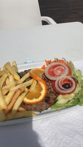 Read moreWe went around to the back of the restaurant to sit at a table facing the beach. This young lady waited on us and we got our food pretty quickly. We decided to split a prego which is a steak sandwich with ham and cheese but I had her leave ham off. I haven't had a prego here that I have ever liked. It's a thin piece of steak and quite dry. My hubs got something called milho frito which is fried cornbread. I had some fries. I think that if the cornbread was cooked longer it would have been good but it was soft inside and I was not a fan. I also had a mojito which was very good, I had never had one before. The drink came after my meal but it was fine because I didn't eat much. The service was fine and the scenery...