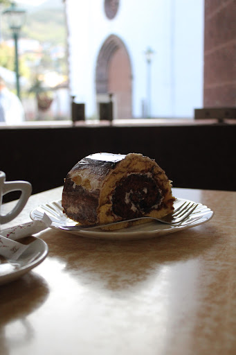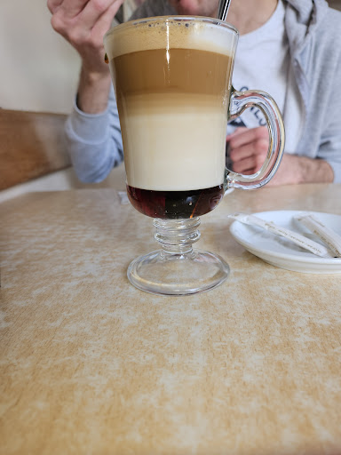 Read moreDie unscheinbare Pastelaria fällt ersteinmal nicht besonders auf, bis man die Tische auf der anderen Seite der Straße entdeckt. Hier kann man gemütlich vor der Kirche draußen sitzen und das Treiben auf dem Kirchplatz beobachten. Das ist bei gutem Wetter sehr zu empfehlen, denn auf den Stühlen drinnen sitzt es sich eher unbequem, und das kalte Ambiente wirkt nicht sonderlich einladend.
