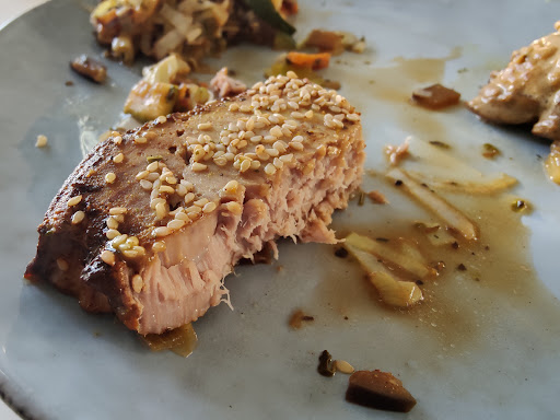 However, in this restaurant, I found the food not particularly exceptional. The taste was nice but not outstanding. The starters were good but served somewhat haphazardly (for example, a green avocado cream on green salad, which could have been presented with more thought, and tuna meatballs with too much cilantro, whose dominant flavor overwhelmed everything else).