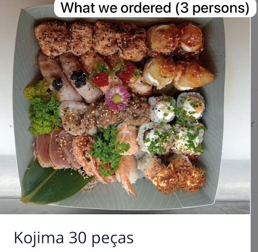 3 friends and I had heard great reviews about this place and decided to try it as a take away service via Ericeira Eats App. We went for the 30 piece pack which showed one great looking image (followed by a very brief description of the sushi pieces) and we received something that looked nothing like the image (See images below)