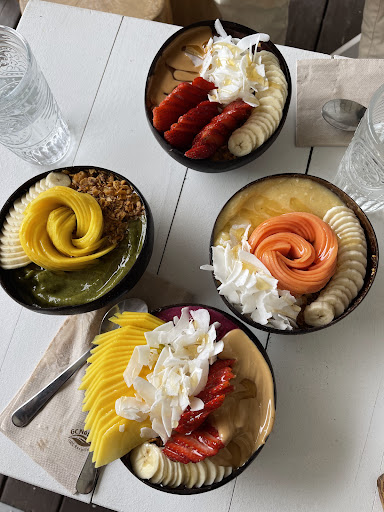 The bowls were OK but a bit overpriced, specially when you’re allergic to a fruit and you cannot swap for a “cheaper” option, you have to pay 1€ extra. Actually, the most dismal part of my first experience eating here was the service of the long-haired lady, she was absolutely rude and seemed like she didn’t want to be in the shop at all. I’ve even tried to give her some empathy in the beginning as it seems they were running late to open the shop (10:16am) so my friend and I waited for a couple of minutes until I decided it’ll be a smart idea if we had the menu earlier just to look through the options. Went I approached her “Bom dia! Could we please have a menu just so we can decide while you’re unpacking - we’re a bit indecisive with food 😅🤣”.. the respond was “No. - She will bring it to you when ready.” Since then, she answered very moodily and abruptly with “NO” to every single question I had. It would’ve been a whole different overall experience if it was at least a neutral energy — I’m not even expecting a happy/cheery service - just even neutral/ polite and professional! The other lady with short hair in the pony tail was at least lovely— but mainly it was the other lady whom I had the interaction with. Super...
