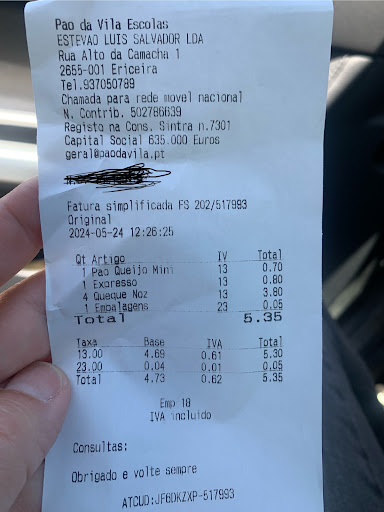 Read moreHabituei-me a ir ao “Pão da Vila” cada vez que vou à Ericeira por ter bolos que achava bons e baratos. Mas hoje o barato saiu caro. Pedi um galão, um rissol de leitão e perguntei se um certo bolo enrolado em papel era queque, responderam-me que sim. Pedi. Achei a conta cara e disse: Está caro. Mas paguei e, por não mo darem, pedi então o talão. Levei o prato as coisas para a mesa e fui ver o talão: não havia lá queque nenhum, estava um “Bolo Vegan” por 3,10€, enquanto as outras duas cisas custavam 1,40€. Perguntei se aquilo era o queque, disseram que sim, pedi para devolver, pois pensava que era um bolo normal comum preço normal. Mas que não, que já tinha ido para a mesa, não podia devolver. Mas não lhe toquei. Não sabia o preço. Não está o preço, nem o nome em lado nenhum. A caixa registadora também não tem visor, não pude ver o que estava a ser registado. Paguei, mas disse logo que achava caro e pedi o talão e só então percebi o que estava a pagar. Mas não, tinha ido para a mesa não podia devolver. Sinto que fui enganada. Disseram que era um queque, não me explicaram que era um bolo espacial, com um preço especial e não aceitaram o bolo de volta. Nem o facto de ter pedido o livro de reclamações aliviou. Lamentável! Já lá não ia há algum tempo e creio que além do serviço a qualidade...
