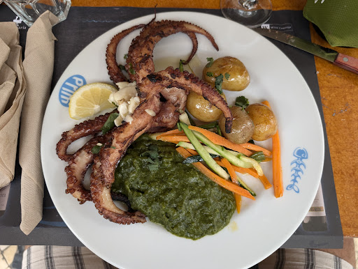 Read moreIt was my first time in Ericeira and in this restaurant. We were hungry so hanged out around the entrance before restaurant was open for dinner but waiter let us in a bit earlier because didn’t want us to get cold outside. It was very nice of them! We were 3 and shared dinner with three main dishes - octopus, cod fish and tuna. Everything was delicious! And side dishes were fantastic too. We also had wine and lemonade, coffee with bolo de bolachas for dessert. Well, dessert was too sweet for my taste, I had better some other places, but food was definitely good quality. I saw people around ordering other meals and all portions seemed big and appetizing. I would love to come back and try...