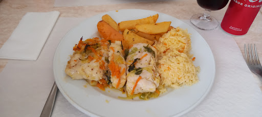 Nada de especial, com a excepção de que a diferença entre menu de 7,50€, e o menu 8,50€, é metade de um medalhão de pescada o de 7,50€ leva 2 medalhões e o de 8,50€ leva 2 medalhões e meio se o prato do dia for medalhões de pescada. O que faz realmente diferença é o prato (loiça) que na relação pequeno/grade é assustador. E se por acaso não lhe colocarem pão na mesa peça pois faz parte do menu, além de azeitonas, bebida e sobremesa. No caso de bacalhau com natas, dá-me a ideia que a diferença é de uma colher de sopa de bacalhau mais ou a menos consoante o menu que escolher, 7,50€ ou 8,50€. Só uma funcionária para atender umas quantas mesas, portanto se pensar em comer em menos de uma hora, esqueça. No geral, a. -------‐-------------------------------------------------------visto o proprietário ter limitado os comentários aqui e ter melhorado o tempo de espera contratando mais uma funcionária, edito este comentário hoje 23/04/2023 agradecendo desde já o facto de ter gostado das minhas fotos. "Agradecemos as fotos ... estão lindíssimas e vão entrar para o álbum. Ainda aproveitando esta edição gostaria de fazer mais uma chamada de atenção visto que no fundo o meu anterior comentário surgiu efeitos positivos. A chamada de atenção é a seguinte: Tocas, bonés o que seja mas algo na cabeça de quem anda com os pratos na mão, pois ninguém vai querer reclamar de ter cabelos no prato. Não precisa de...