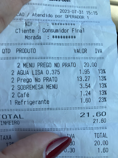Read moreApenas pedimos pregos no prato e bitoques, A carne já devia estar a expirar o prazo. Para além disso a carne tinha a expesura de 2 fatias de Fiambre, Pratos insipidos,. Em vez de um bitoque tradicional, é apresentado como um bife. Quanto ao preço, ainda pior, 9,5€ ,por um lamentável bitoque, comparado com o Bife da casa no Café/Cervejaria Império (15€) AV Almirante Reis, Lisboa então , este prego, é quase uma ofensa, tanto pelo seu preço quanto pela sua qualidade servida. Lamento pela casa, pois assim é difícil de aumentar os clientes, doses sem qualidade, reduzidas, e com preços elevados.!. Não consigo entender quem quer ter sucesso apenas cobrando caro a quem se senta a mesa desprezando o cliente da forma descuidada e desenteresada, como preparam as refeições.