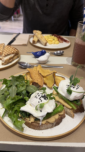 Read moreThe poached eggs are a dream! Very cute place with nice staff, and delicious food. I strongly recommend the poached eggs as the combination of hummus, broccoli and the eggs just played so well! I enjoyed every single bite and was so sorry when I was done with it. We also had the Fried egg which was basically avocado toast with sunny side up egg, but also delicious. My bf had scrambled eggs with bacon, also yummy and the turkey sandwich which was good but must say nothing special. It could use some “spice up”. Still I would come back and strongly recommend this place. What I also loved about this place was that it was the first one (after 7 days in Portugal) which had clearly showed...