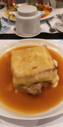 Read moreJá tinha experimentado esta francesinha há uns 8, 9 anos (duas vezes). Desta vez foi só para tirar as teimas, por ser considerada, por muitos, a melhor francesinha da Maia e a melhor. Depois uma pessoa ouve isto e aquilo e até ganha uma vontade extra de ir lá. Só que as mesmas pessoas que teceram esses elogios, também nunca foram aos sítios onde já nos deliciámos com uma verdadeira francesinha, daquelas que são acima da média...mas também não vão lá, porque são fiéis às suas convicções em como "não há melhor do que esta". Há que experimentar para colher opiniões. É o que fazemos. Esta é uma francesinha de café - parece redundante mas não é - daquelas que se comem em qualquer café. Quero com isto dizer que é banal. Começando pelo molho, este é aguado, apimentado e insosso. A francesinha é bastante simples, sem ter ponta por onde se pegue. As fatias de pão são grossas, proporcionando-lhe um maior volume. Sendo esta, a francesinha de carnes brancas, temos um bife de perú e algumas fatias de fiambre do mesmo. Quanto ao resto, nem consegui sentir a linguiça ou a salsicha fresca. Mas estavam lá. Esta custou uns 6,50€, não está mau. Mas quando se come a mesma francesinha, com um pires de batata frita, ovo e bebida, o preço ascende à dezena de euros. Aí já é mau, mas vai de acordo com...